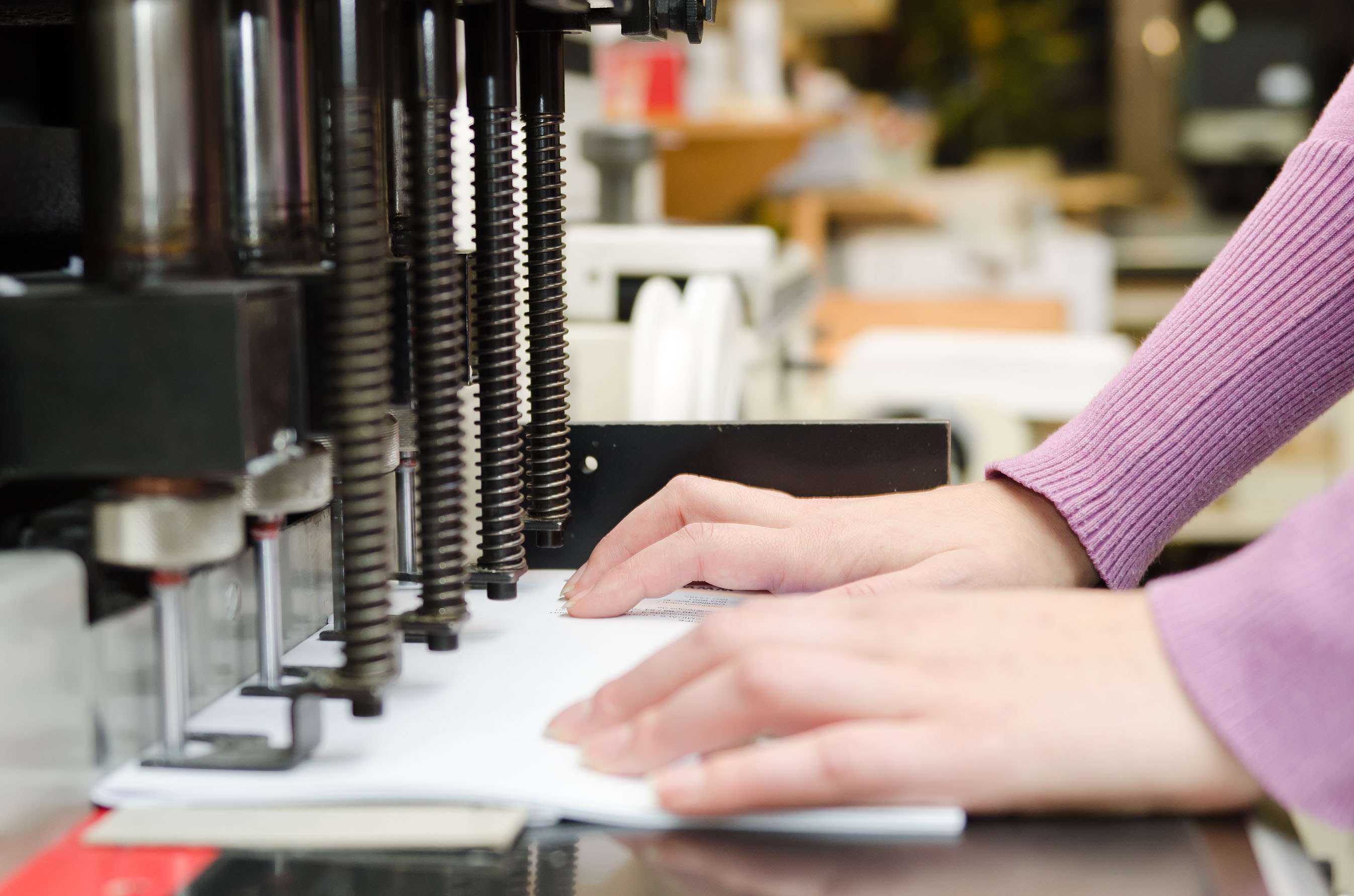 Falzen, Heften, Rückendrahtheftung, Ringösenheftung, Blockheftung, Blockleimung, Perforieren, Zungenperforation, Leimen, Binden, Lochen, Wire-O-Bindung, Stanzen, Konturstanzung, Nuten, Rillen, Nummerieren und noch so Einiges.